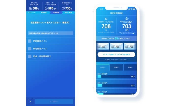 ミイダスの最大の特徴は「市場価値診断」という機能です。