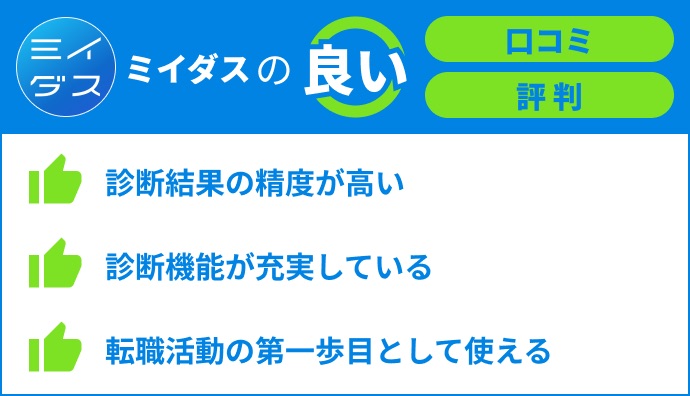 ネット上では、ミイダスの各種診断についても良い評価が多く上がっています。